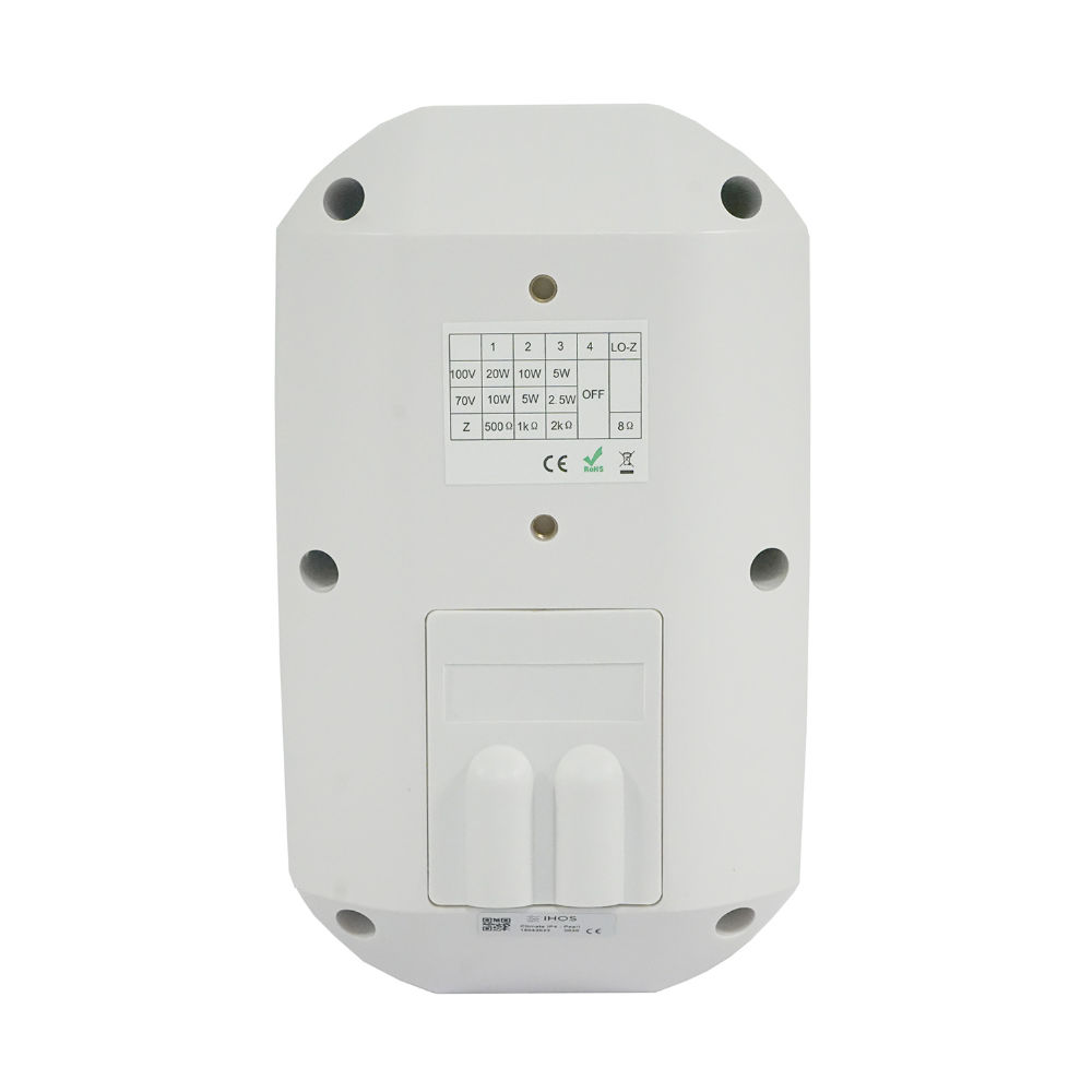 Colunas para todas as condições climáticas, para música e voz/fala, com acabamento à prova d’água IP66, caixa em ABS, grelha de metal inoxidável e suporte. Pode operar em 70/100 V ou 8 Ohm – disponível nas cores branca e preta.