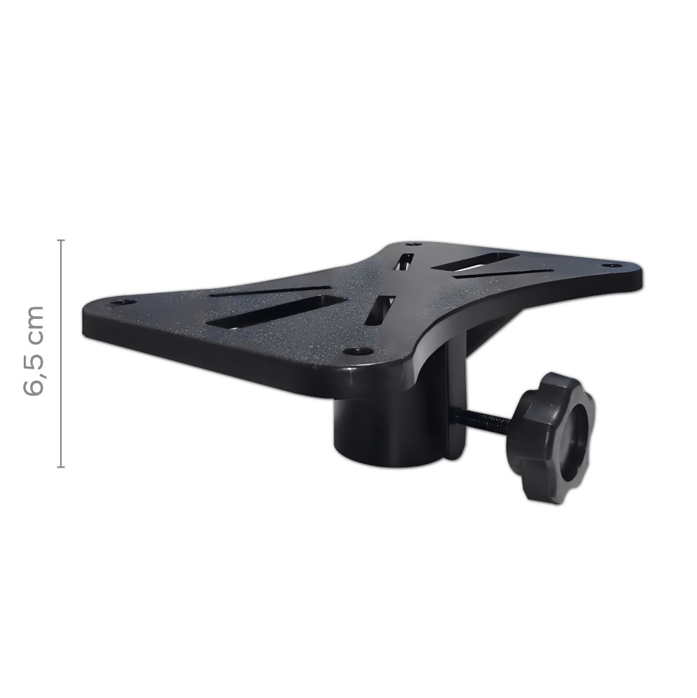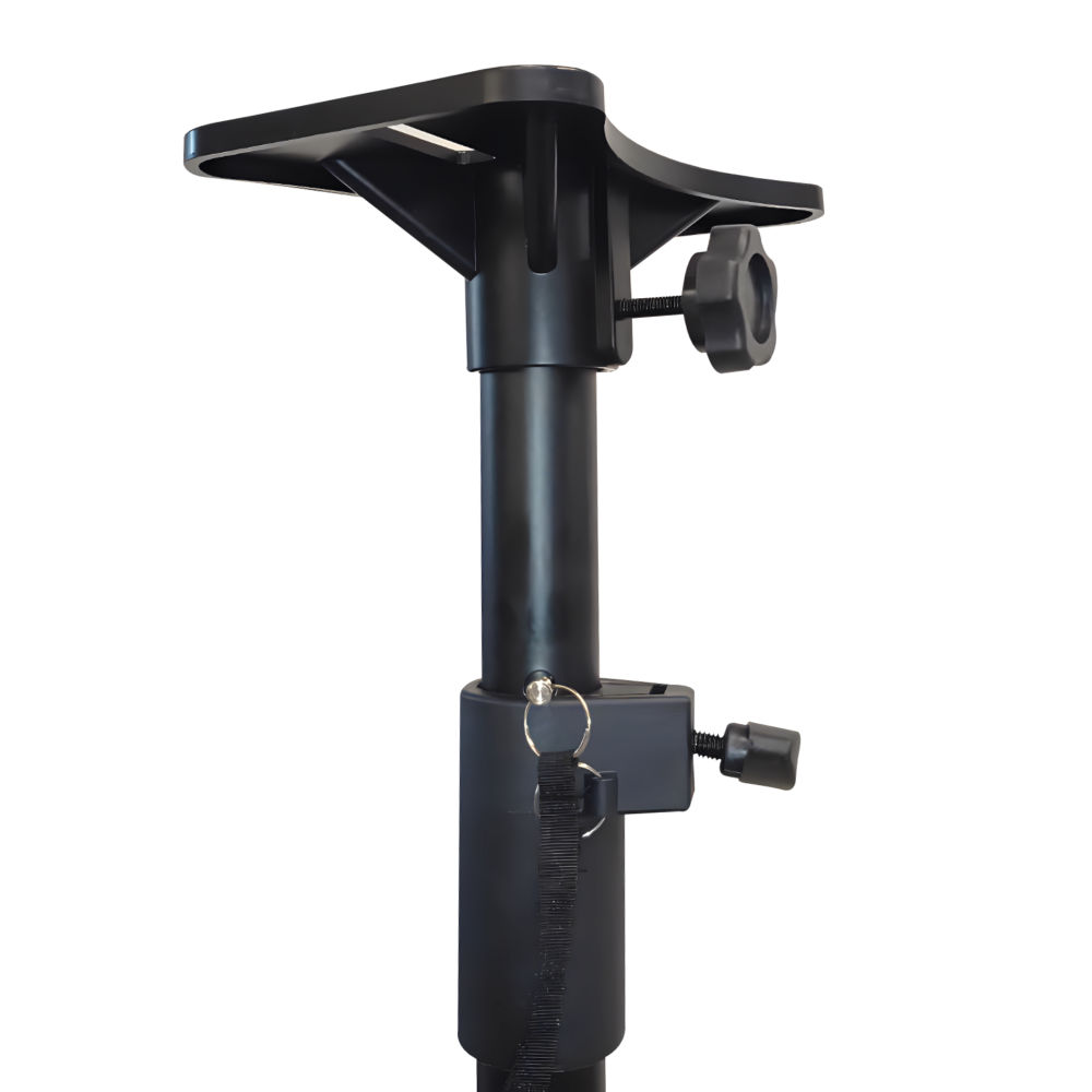 Fabricado em metal com capacidade para se elevar de 1,1 m a 1,8 m. Cada suporte pode suportar um peso de cerca de 60 kg e é revestido a pó preto. Além dos 2 suportes, é fornecido um saco para um transporte cómodo e 2 bases para fixar altifalantes que não tenham a tomada clássica de 35 mm.