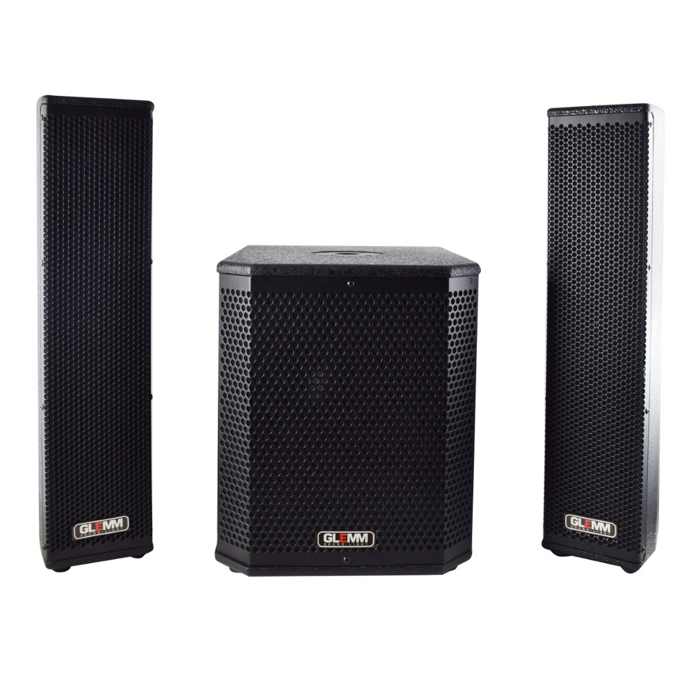 Sistema de áudio 2.1 completo que consiste em um subwoofer amplificado de mais de 600 W com woofer de 12 “e duas colunas satélite, cada um com 4 colunas de 2 vias, capazes de reproduzir uma potência máxima de 150 W. O woofer é amplificado e fornece o sinal para os dois satélites por meio dos cabos speakon fornecidos. O amplificador está equipado com um módulo MP3 com display LCD e a possibilidade de gerir sinais MP3 e Bluetooth de smartphones ou tablets.